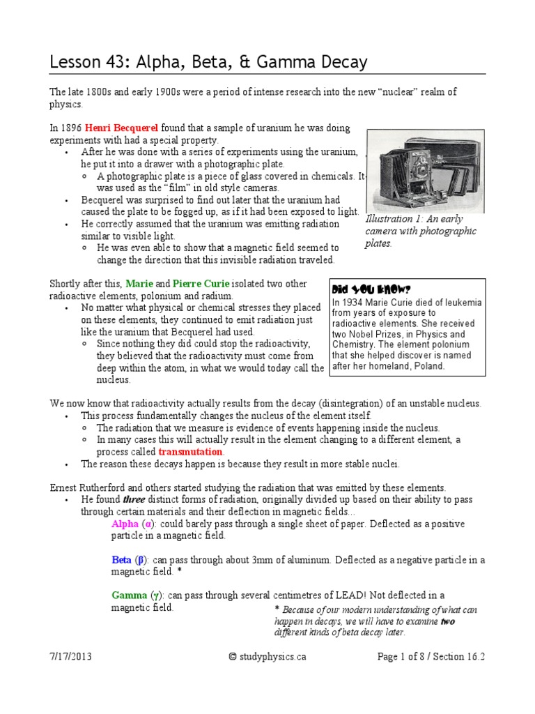 Observe the five main types of nuclear decay: Reproduction for educational use only. Fill & sign online, print, email, fax, or download. Alpha decay, beta decay, gamma decay, positron emission, and electron capture. What is an alpha particle made of?